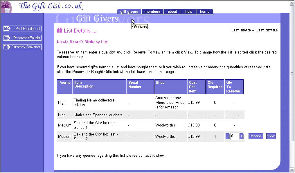 then be updated so that these items are no longer viewable to anyone else - hence no more duplicated presents!!